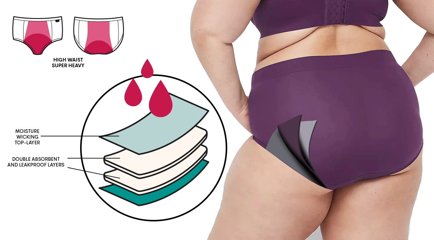 Nejnovější vývoj z roku 2024 z nepropustného materiálu, rychle absorbuje 30 ml tekutiny a uzamkne ji, což odpovídá 2-3 standardním tamponům nebo hygienickým vložkám. A udržujte své spodní prádlo suché po celý den!